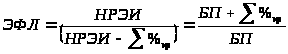 ЭФРз-е = (1 – ставка налога на прибыль) × (экономическая рентабельность активов – средняя расчётная ставка процента за кредит) × заёмный капитал ⁄ собственный капитал,