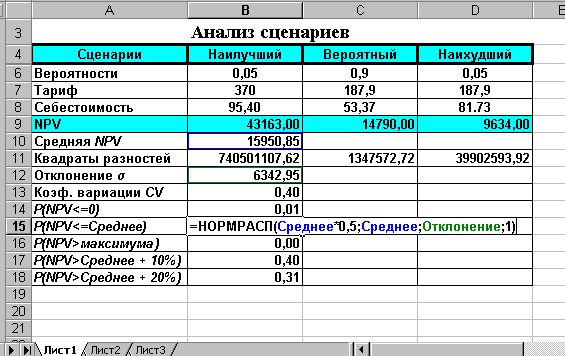 Анализируя полученные результаты при сравнительном сопоставлении количественного и качественного подхода в прогнозировании деятельности «Спецстрой», отмечаем, что метод сценариев даёт более пессимистичные оценки относительно риска инвестиционного проекта. В частности коэффициент вариации, определённый по результатам этого метода значительно больше, чем в случае с имитационным моделированием.