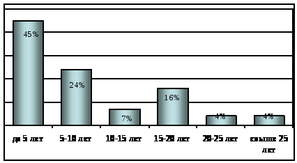 Анализ качественного состава персонала показал, что 70% работников от общей численности занимают мужчины, это связано со спецификой деятельности организации. Основная возрастная категория персонала – 46-50 лет, что составляет 20%, так же преобладают сотрудники в возрасте до 30 лет (16%), что немаловажно для дальнейшей деятельности предприятия. Высшее образование имеют 22 % сотрудников, 25% - со средне - профессиональным образованием, но преобладают работники со средним образованием (43%), что в целом удовлетворяет потребности предприятия.