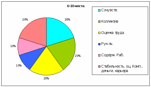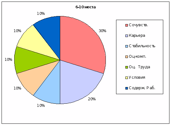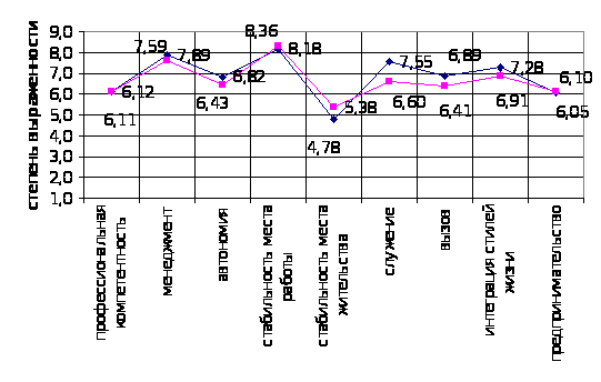Таким образом, на первые места по важности испытуемыми, имеющими четкие представления о карьере, были вынесены деньги, карьера, стабильность и оценка работы компанией, в то время как в группе испытуемых, имеющих нечеткие представления о карьере, были вынесены такие факторы, как условия труда, оплата, содержание работы и оценка своего труда. Это говорит о том, что для испытуемых, имеющих четкие представления о карьере, в результате высокой конкуренции на рынке труда и жесткого отбора при поступлении на работу гораздо более важно обеспечить свое финансовое благополучие и устойчивость в социальной и организационной среде, а для испытуемых, имеющих нечеткие представления о карьере, наличествует непонимание своих целей и потребностей в работе, результатом чего является низкая удовлетворенность трудом и отличия в трудовой мотивации.