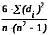 2. Результаты экспертизы можно считать достоверными лишь в случае, если будет достигнута достаточная степень согласия между участвующими в экспертизе экспертами. Мерой близости ранжировок может служить коэффициент ранговой корреляции, который посчитаем по Спирмену, т.к. имеется только 2 эксперта. Значение коэффициента ранговой корреляции по Спирмену вычисляется по формуле: