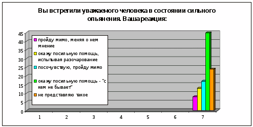 На вопрос «Вы встретили уважаемого вами человека в состоянии сильного опьянения. Ваша реакция» ответили так: