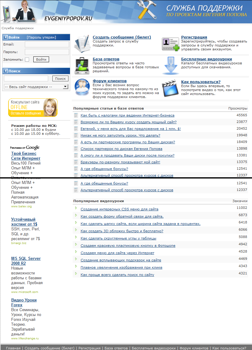 In process of functioning an author has viewed 15 training videocourse once-personal authors of them 7 disks Evgeniy Popov. Also I led the correspondence on e-mail with Evgeniy Popov, search for information on forums creating other info businessman.