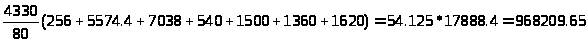 V1 = 54,125*(1*256+0,31*5574,4+0,4* 7038+1*1360) = 333370,16 руб.