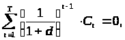 Внутрішня норма прибутковості визначається як коефіцієнт дисконтування (d), при якому поточна величина чистого доходу дорівнює 0