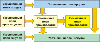 - на основе уточненного плана продаж формируется уточненный план производства;