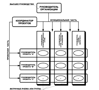 Выход из ситуации был найден на пути перехода к так называемым матричным структурам. Суть последних состоит в том, что в рамках постоянно существующих подразделений создаются временные рабочие группы (проекты), связанные с решением конкретных задач. Между этими группами распределяются, а при необходимости перераспределяются ресурсы, выделенные подразделению.