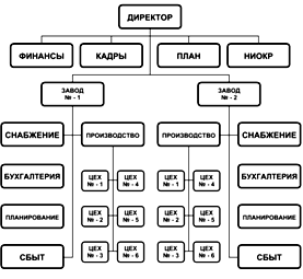 Организация, имеющая дивизиональную структуру, состоит из ряда самостоятельных подразделений (предприятий), пространственно отделенных друг от друга. Каждое из них имеет собственную сферу деятельности, самостоятельно решает текущие производственные и хозяйственные вопросы.