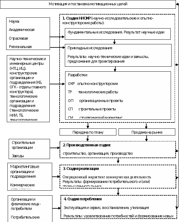 Непосредственно инновационный процесс начинается с этапа проведения поисковых НИР. Завершаются поисковые НИР обновлением и экспериментальной проверкой новых методов удовлетворения общественных потребностей. Они проводятся как в академических учреждениях и вузах, так и в крупных научно-технических организациях промышленности персоналом высокой научной квалификации и финансируются в основном из государственного бюджета и на безвозвратной основе.