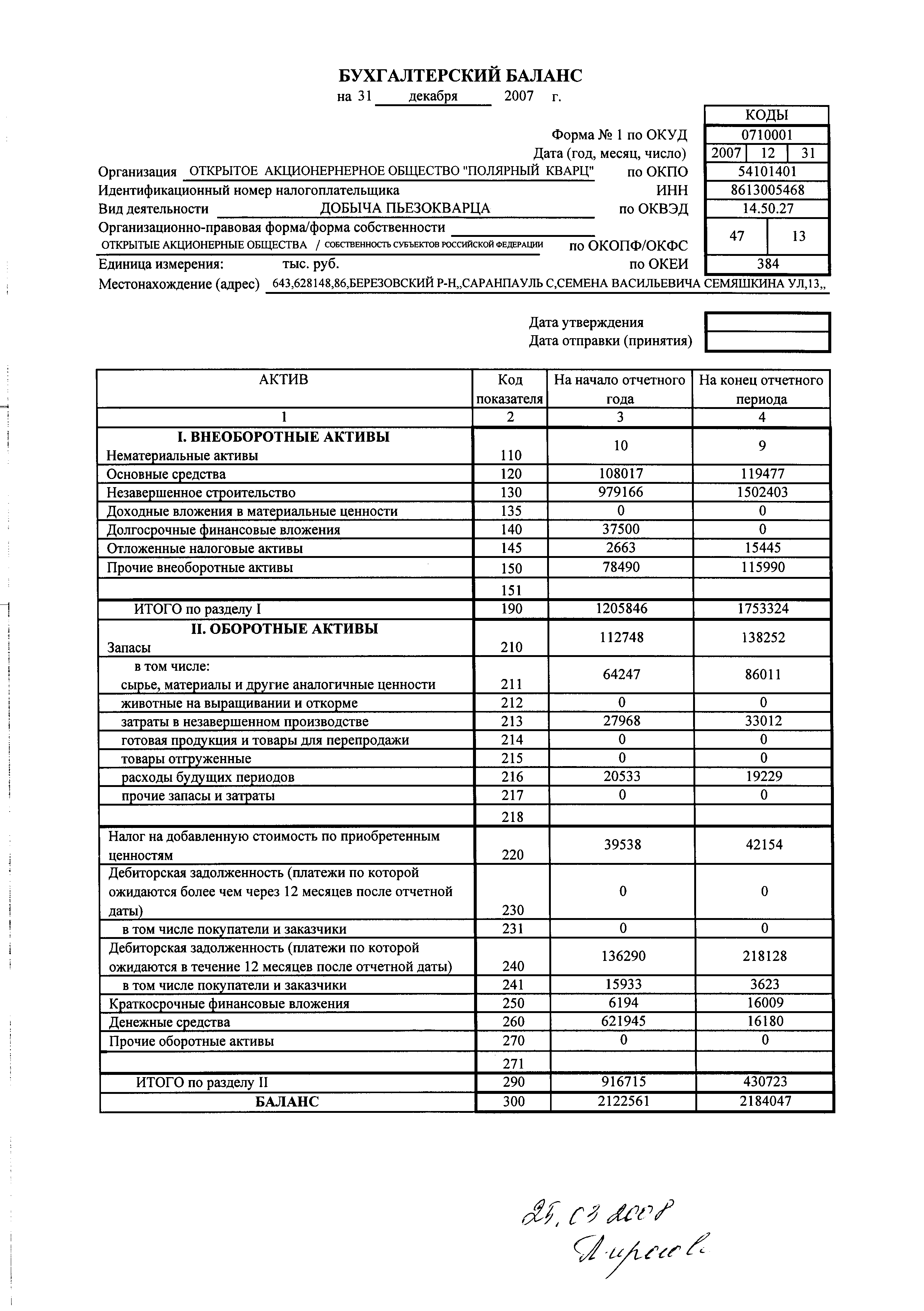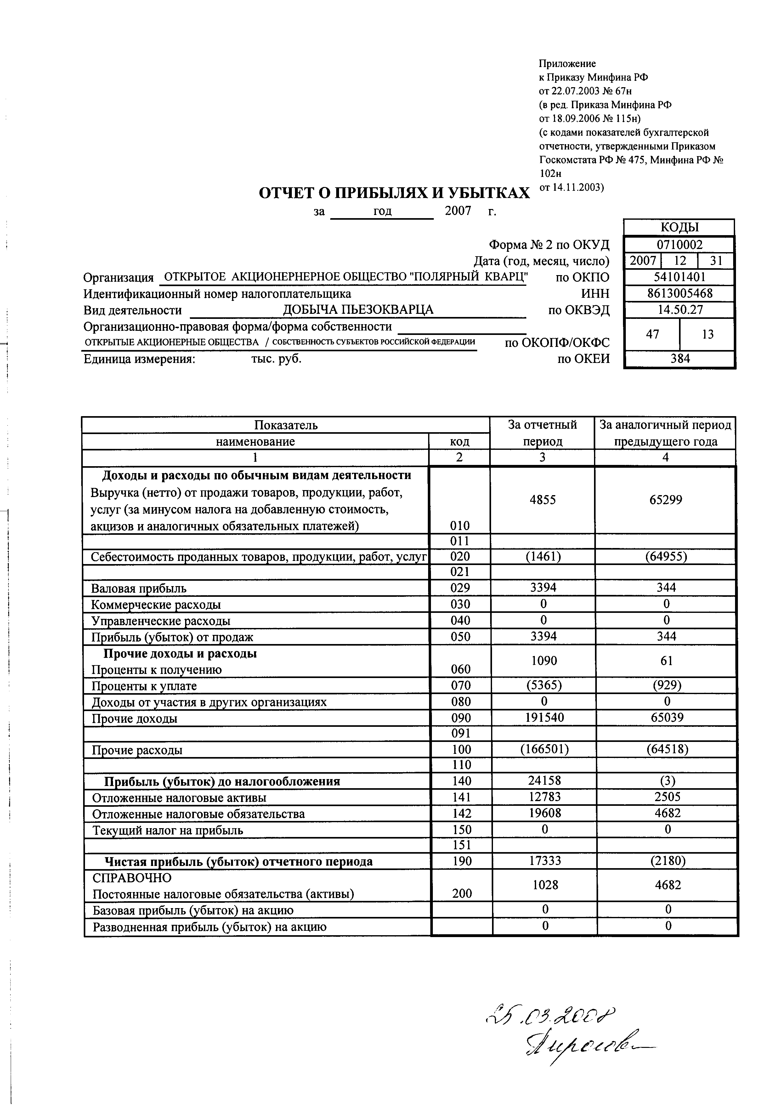 Форма № 2 по ОКУД |