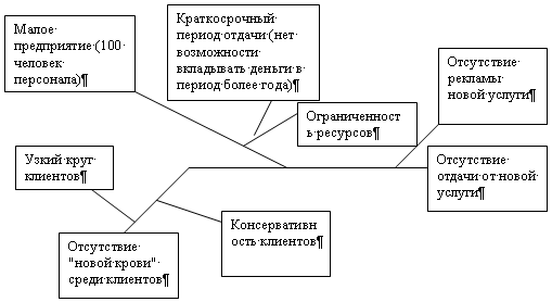 Симптом: малая эффективность новой услуги среди старых и потенциальных клиентов.
