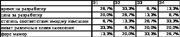 Из рассмотрения мы исключили второй критерий – цена за разработку.
