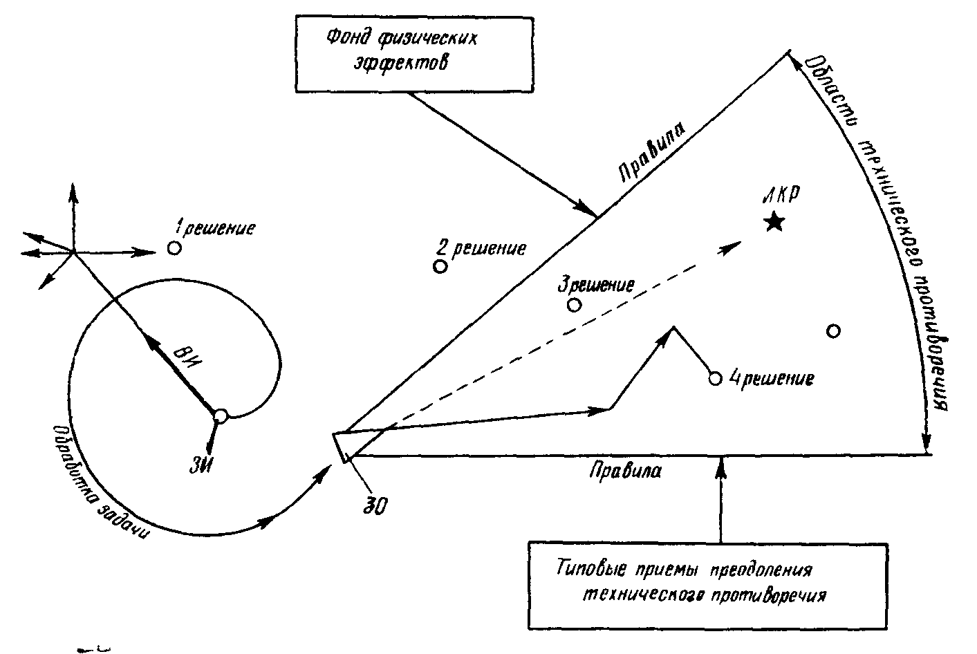 (ЗИ – исходная задача, ВИ – вектор психологической инерции; ЗО – обработанная задача; ИКР – идеальный конечный результат).