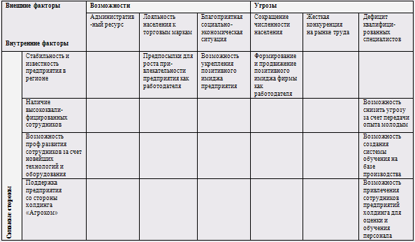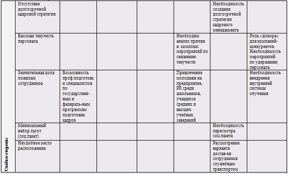 Таблица 1.7 – Комплексная оценка возможностей и угроз с учетом сильных и слабых сторон предприятия