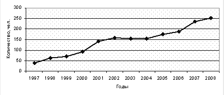 За время своего существования предприятие значительно меняло свой облик. С 1996 по 2008 г. численность работников увеличилась более чем в пять раз (см.рисунок 1.1).