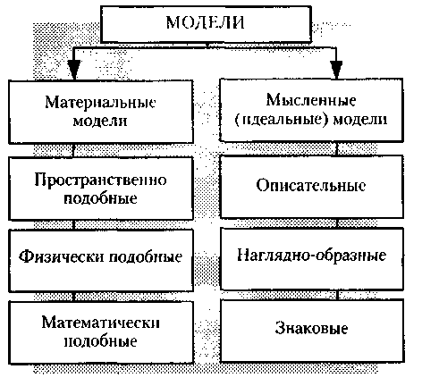 По способу отображения или аппарату построения различают два вида моделей (рис. 2): материальные и мысленные, или идеальные.