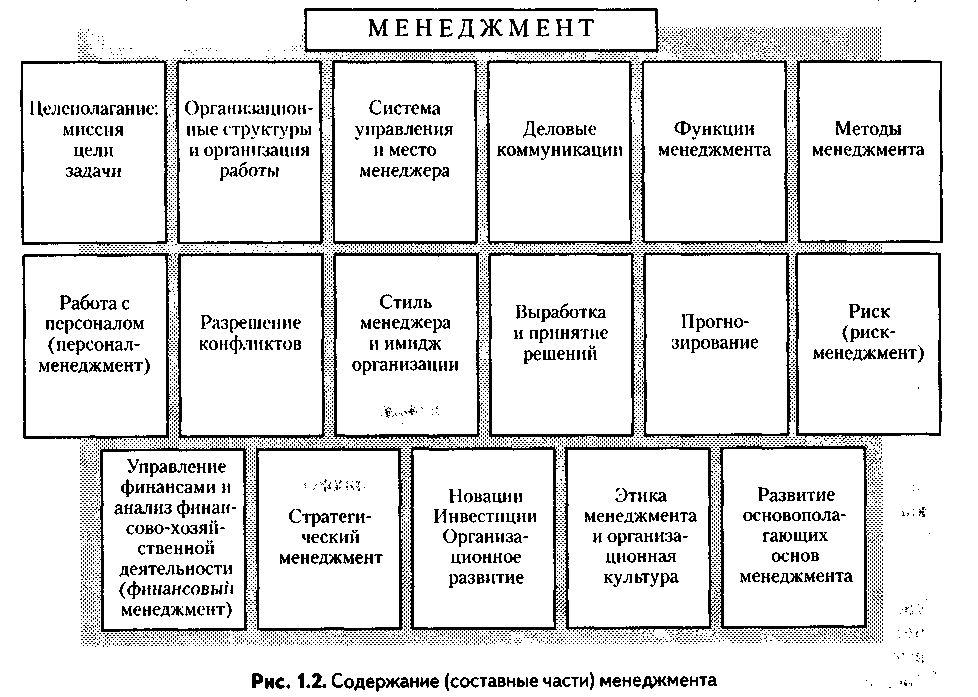 Содержание менеджмента складывается из следующих основных частей (рис. 1.2).