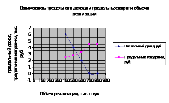 По графику видно, что предельный доход = предельные издержки =3 при объеме реализации 550 тыс.штук.