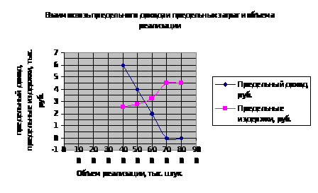 На основе данных таблицы 3 строим график взаимосвязи предельного дохода, предельных издержек и объема производства.