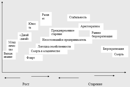 Вновь созданные российские деловые организации проходят все фазы развития, описанные Адизесом.
