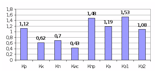 На основании расчета коэффициента комплексной оценки результатов управления цехом можно построить диаграмму, с помощью которой будет проще сделать общий вывод о состоянии эффективности управления цехом.