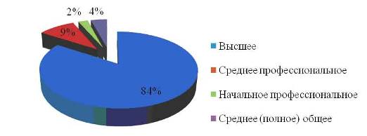 Уровень квалификации большинства работников отвечает требованиям занимаемой ими должности.4% составляют работники, чей уровень квалификации несколько превышает должностные требования, и совсем незначительна доля работников, меньше 2%, чей уровень квалификации недостаточен для выполнения должностных обязанностей.