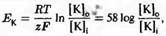 Допустим теперь, что в мембране, кроме калиевых, присутствуют еще и хлорные каналы. Поскольку для анионов z = - 1, получим равновесный потенциал для хлора: