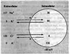 1. Как внутриклеточная, так и внеклеточная среды должны быть электрически нейтральными. Так, например, раствор не может состоять из одних лишь ионов хлора. Отрицательный заряд этих ионов должен компенсироваться такими положительными ионами, как натрий или калий (иначе взаимное отталкивание одинаково заряженных частиц приведет к разрушению раствора).