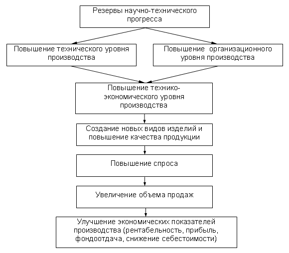Влияние НТП на повышение эффективности производства продукции можно пояснить на схеме (рис. 2.2).