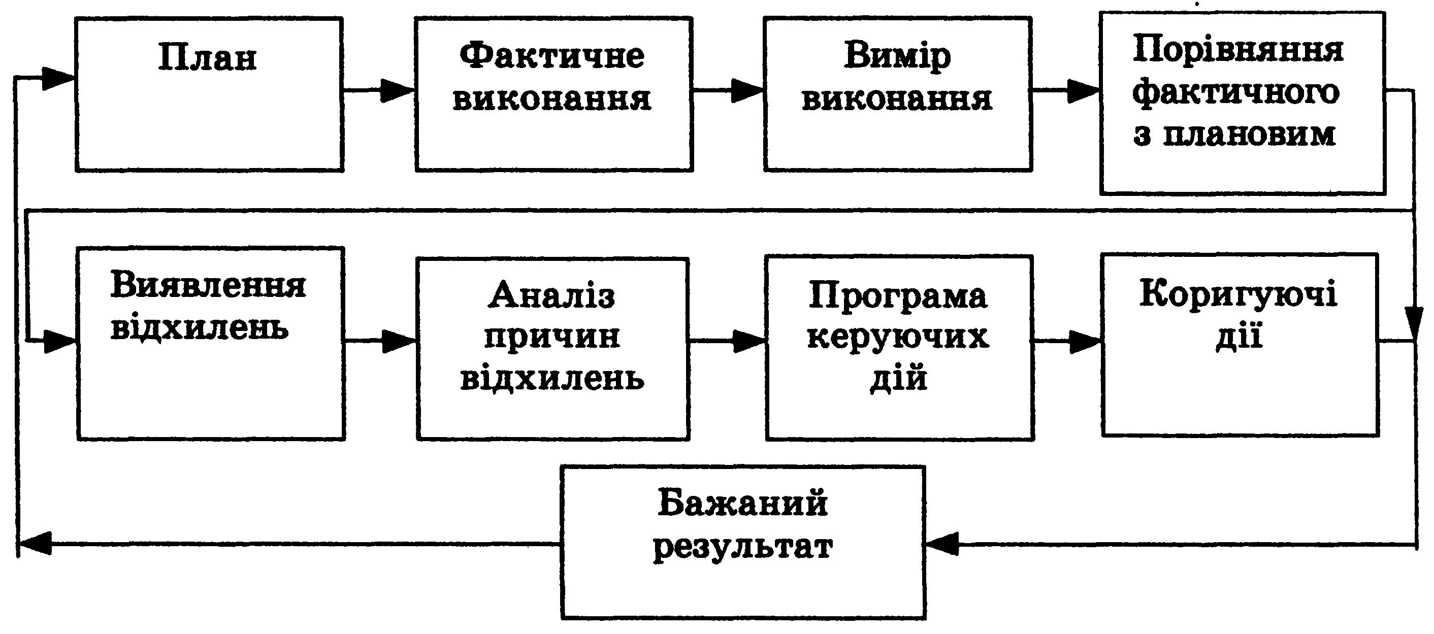 У менеджменті контроль можна визначити як процес спостереження за тим, як підприємство рухається до наміченої мети, та коригування відхилень від прийнятого курсу в разі необхідності.
