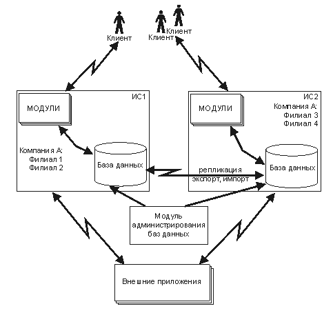 1 Архитектура работы нескольких согласованных информационных систем с центральным управлением