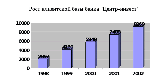 Клиентская база банка в 2001 году увеличилась на 23,4 %. Стабильный рост числа клиентов – результат высоких стандартов работы банка: