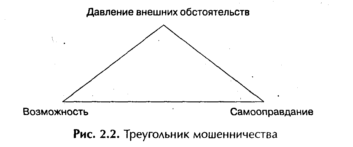 Воровство как преступление заключается в овладении государственным, общественным или личным имуществом путем обмана или злоупотребления доверием. По мнению американских ученых, существует так называемый «треугольник мошенничества». Авторы исходят из того, что каждый человек, способен совершить воровстство, нужно только, чтобы он оказался в соответствующей ситуации. Три элемента, образующие в совокупности так называемый треугольник мошенничества и определяющие мотивацию и возможность для его совершения, представляют собой: 1) давление финансовых обстоятельств; 2) возможность совершить и некоторое время скрывать акт воровства; 3) способность оправдать это действие.