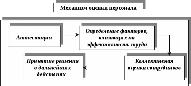 В третьей главе работы мы определили, что формальный подход к аттестации персонала лишает служащих дополнительной мотивации к повышению собственной квалификации и ответственному выполнению своих должностных обязанностей. В этой связи мы считаем целесообразным предложить направления совершенствования системы оценки персонала в администрации. Ключевым моментом на пути к эффективной оценке персонала мы считаем организацию механизма оценки персонала. При этом механизм оценки персонала должен включать несколько основных элементов, первым из которых является выведение системы аттестации из формального на реальный уровень. Далее, с помощью анкетирования, проводимого непосредственно в процессе аттестации, необходимо определить те факторы, которые оказывают влияние на эффективность труда сотрудников. Затем для полноценной оценки потенциальных претендентов на повышение в должности или квалификационного разряда необходимо провести оценку их кандидатуры коллегами по работе. Для этого им предлагается заполнить анкету, в которой в анонимном порядке они смогут высказать свое мнение о претенденте на ту или иную должность. Подобная процедура оценки персонала способна, на наш взгляд, мотивировать его на стабильное достижение положительных результатов в процессе своей профессиональной деятельности. Кроме того, нами был сделан вывод о том, что и в затратной части реализация этих мероприятий более чем возможна в условиях специфической формы организации работы администрации.