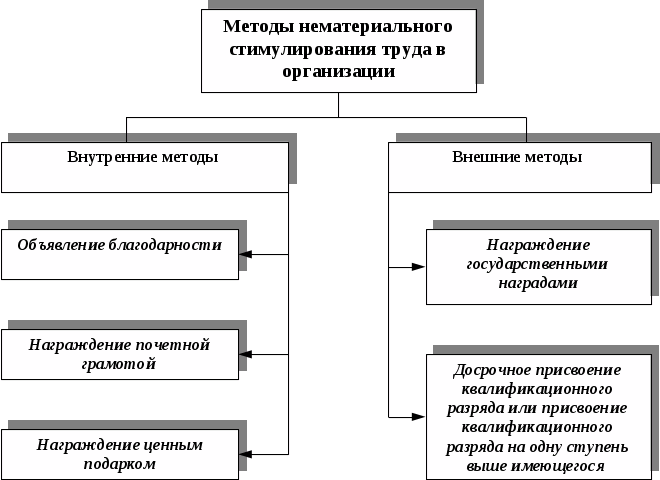 Моральное поощрение. Стимулы, направленные на удовлетворение духовных и нравственных потребностей человека: благодарности, почетные грамоты, доски почета, почетные звания, правительственные награды и т.д.
