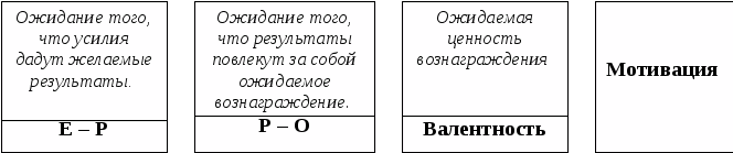 Еще одним элементом мотивации является вознаграждение. Вознаграждение – это тот положительный результат, все то ценное для человека, что он получает, предпринимая какое-либо действие.11 Вознаграждения для каждого человека индивидуальны, их различают как внутренние и внешние. Внутренние вознаграждения – это удовлетворение от самой работы, чувство самоутверждения, самоуважения, удовольствие от общения. Внешнее вознаграждение зависит от работы косвенно, это признание и уважение коллег, статус работника, премии, заработная плата, похвала начальника, повышение в должности.