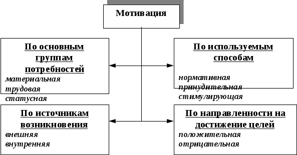 Первые два вида мотивации прямые, так как предполагают непосредственное воздействие на подчиненных, третий – косвенный, так как в его основе лежит воздействие внешних факторов – стимулов.