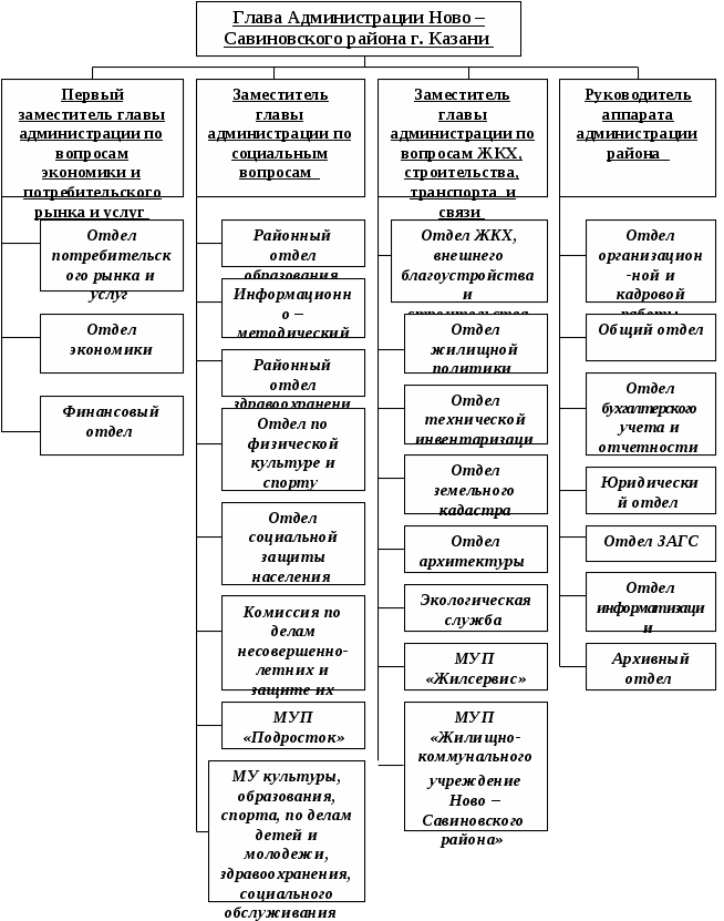 Вторую главу работы мы посвятим исследованию системы мотивации муниципальных служащих в администрации Ново – Савиновского района г. Казани, изучению существующей в организации системы управления, а так же дадим оценку системе материального стимулирования в организации и методам нематериального стимулирования труда муниципальных служащих.