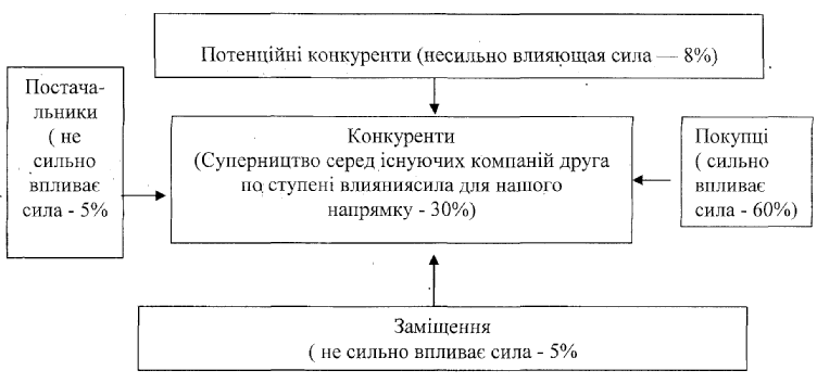 Також значний вклад у теорію конкуренції вніс професор Гарвардської школи бізнесу М.Портер. Відповідно до його теорії, суть конкуренції в будь-якій сфері економіки характеризується взаємодією п'яти основних сил, які зображені на рис. 1.1. Відповідно, успішність дії фірми на галузевому ринку визначаються тим, наскільки ефективно компанія протидіє наступним конкурентним силам: