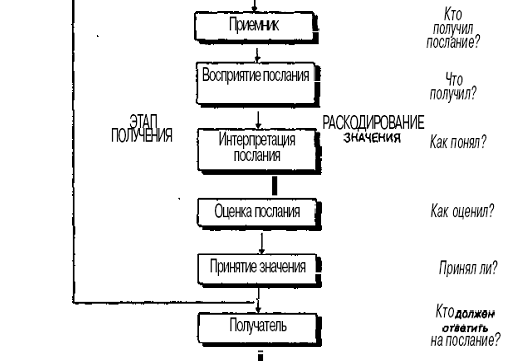 Раскодирование включает восприятие (что получил) послания получателем, его интерпретацию (как понял) и оценку (что и как принял).