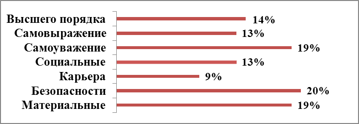 Наиболее важное значение для сотрудников имеет потребность в безопасности и защищенности. Чуть ниже уровень материальных потребностей и потребностей в самоуважении.