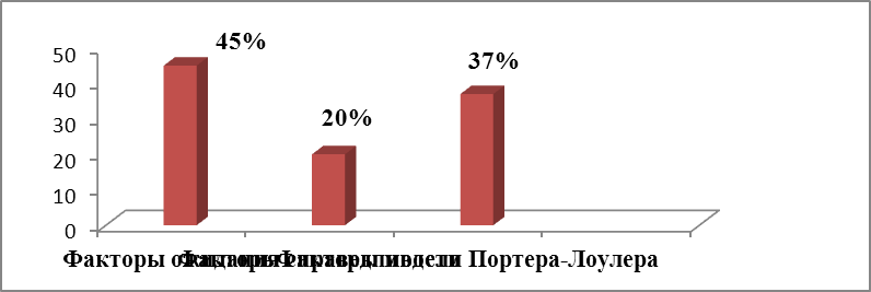 Факторы модели Портера-Лоулера показывают высокую оценку работниками своих способностей и своего вклада в процесс коллективного труда. Затраченные усилия работники также считают высокими, но справедливость вознаграждения по отношению к результатам своего труда ощущает только четверть респондентов.