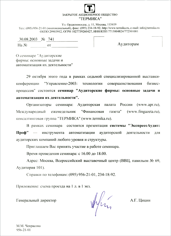 Итак, существуют определенные каноны написания деловых писем, несоблюдение которых может не только отразиться на престиже фирмы, но и помешать заключению выгодных контрактов. Соблюдение же этих правил будет залогом успеха вашего дела и будет свидетельствовать о вас как о солидном партнере с устойчивым финансовым положением и серьезными намерениями.