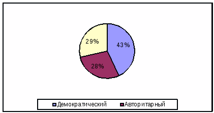 Проведя тест №1 нами было выявлено: в коллективе преобладает демократический стиль руководства, что составляет 42% от общего числа тестируемых, что можно представить в виде следующей диаграммы.