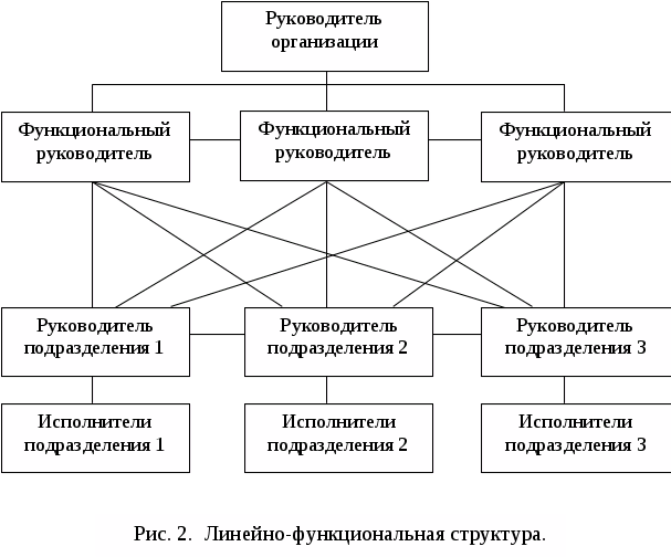 В структуре управления организацией различаются линейные и функциональные связи. Первые суть отношения по поводу принятия и реализации управленческих решений и движения информации между так называемыми линейными руководителями, то есть лицами, полностью отвечающими за деятельность организации и ее структурных подразделений. Функциональные связи сопрягаются с теми или иными функциями менеджмента. Соответственно используется такое понятие, как полномочия: линейного персонала, штабного персонала и функциональные. Полномочия линейных руководителей дают право решать все вопросы развития вверенных им организаций и подразделений, а также отдавать распоряжения, обязательные для выполнения другими членами организации (подразделений). Полномочия штабного персонала ограничиваются правом планировать, рекомендовать, советовать или помогать, но не приказывать другим членам организации выполнять их распоряжения.