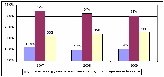 в 2008 году также произошло снижение количества банкетов во второй половине года, также под влиянием кризиса, в 2009 году ситуация начала стабилизироваться;