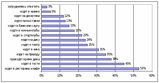 Также рассмотрим результаты проведенного исследования предпочтений потребителей в отношении видов обслуживания. Ниже приведены данные экспертного Интернет-опроса, проведенного в 2009 году компанией «Арсенал-Груп» с целью выявления особенностей поведения потребителей при выборе и оценке предприятия ресторанного бизнеса в различных ситуациях (были опрошены 560 жителей Санкт-Петербурга) [15, с. 56].