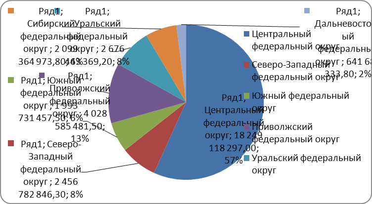 Анализ рис. 3 показывает, что около половины оборота розничной торговли приходится на Центральный федеральный округ (38% от российского оборота розничной торговли за рассматриваемый период). Это связано с тем, что крупнейшие оптовые фирмы расположены в данном федеральном округе, что сокращает транспортировку товаров их для конечного потребителя.