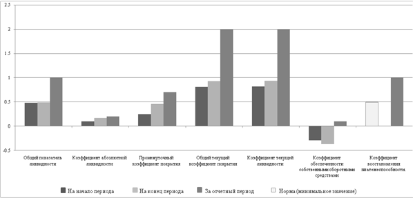 Собственная платежеспособность организации снизилась к концу отчетного периода, и остается неудовлетворительной за счет дефицита собственных оборотных средств предприятия. Так же это состояние можно характеризовать как кризисное финансовое состояние, при котором предприятие на грани банкротства, поскольку в данной ситуации денежные средства, краткосрочные ценные бумаги и дебиторская задолженность не покрывают его кредиторской задолженности и просроченных ссуд.