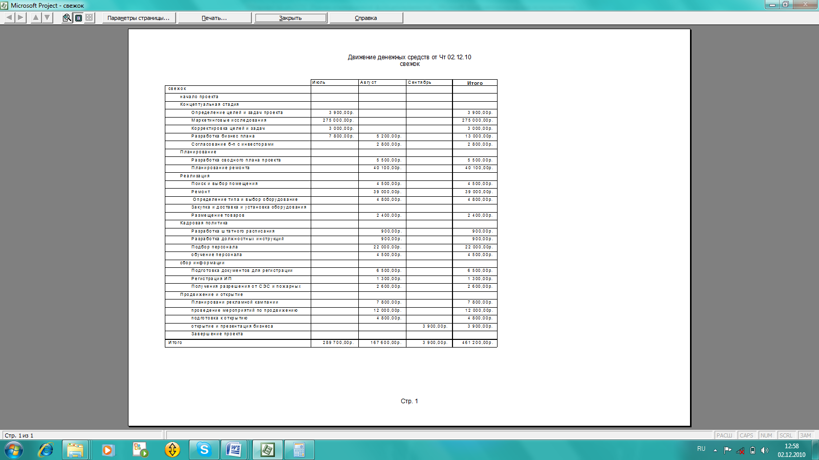 Разработанный проект состоит из трехшести этапов и 23 работ, общей продолжительностью 45 рабочих дней. Сумма средств, необходимая для реализации проекта составляет 461200, 00 рублей.